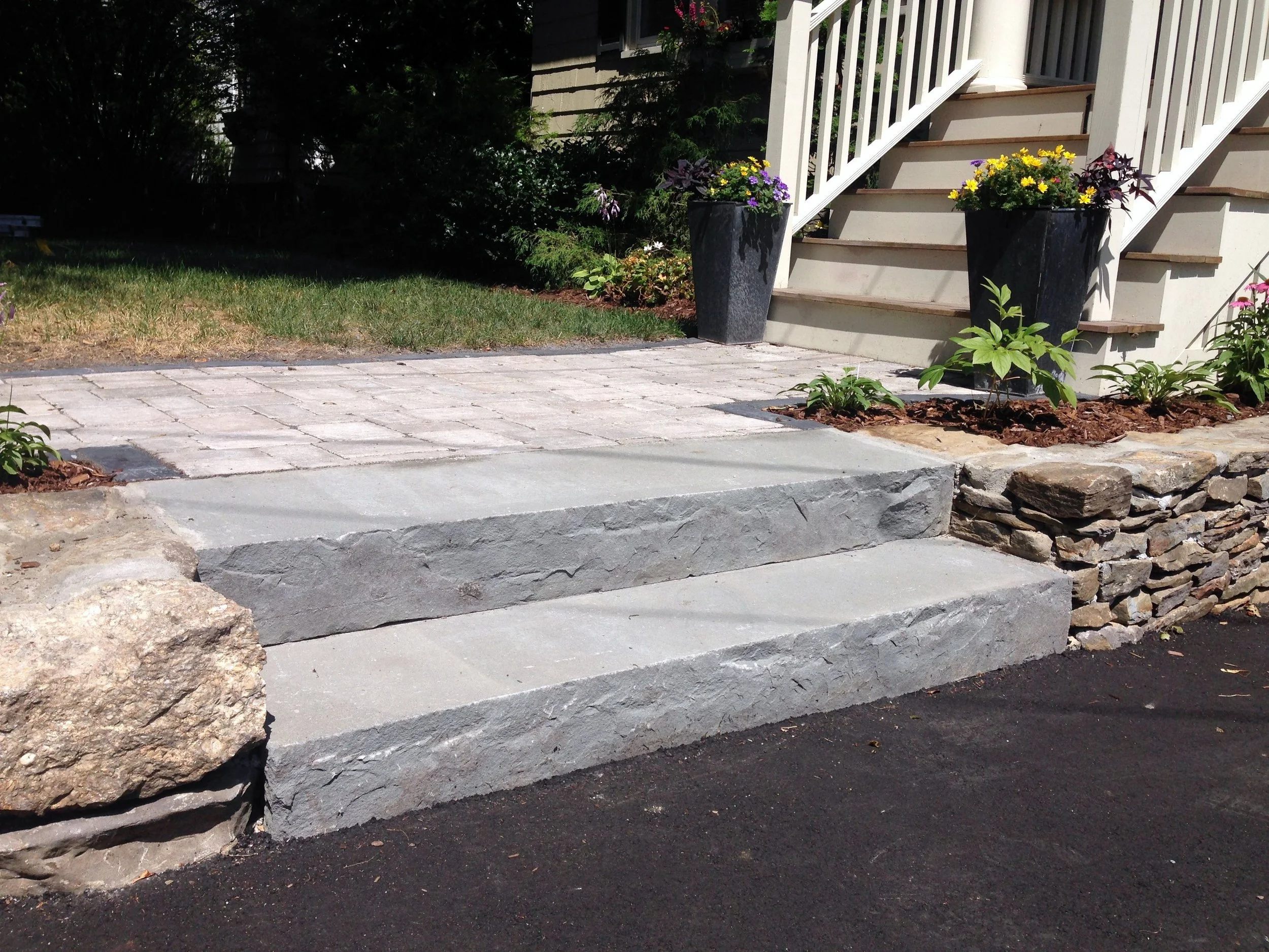Do Landscapers Near Me in Newton and Belmont, MA, Recommend Mixing Materials for a Unique Front Entry?