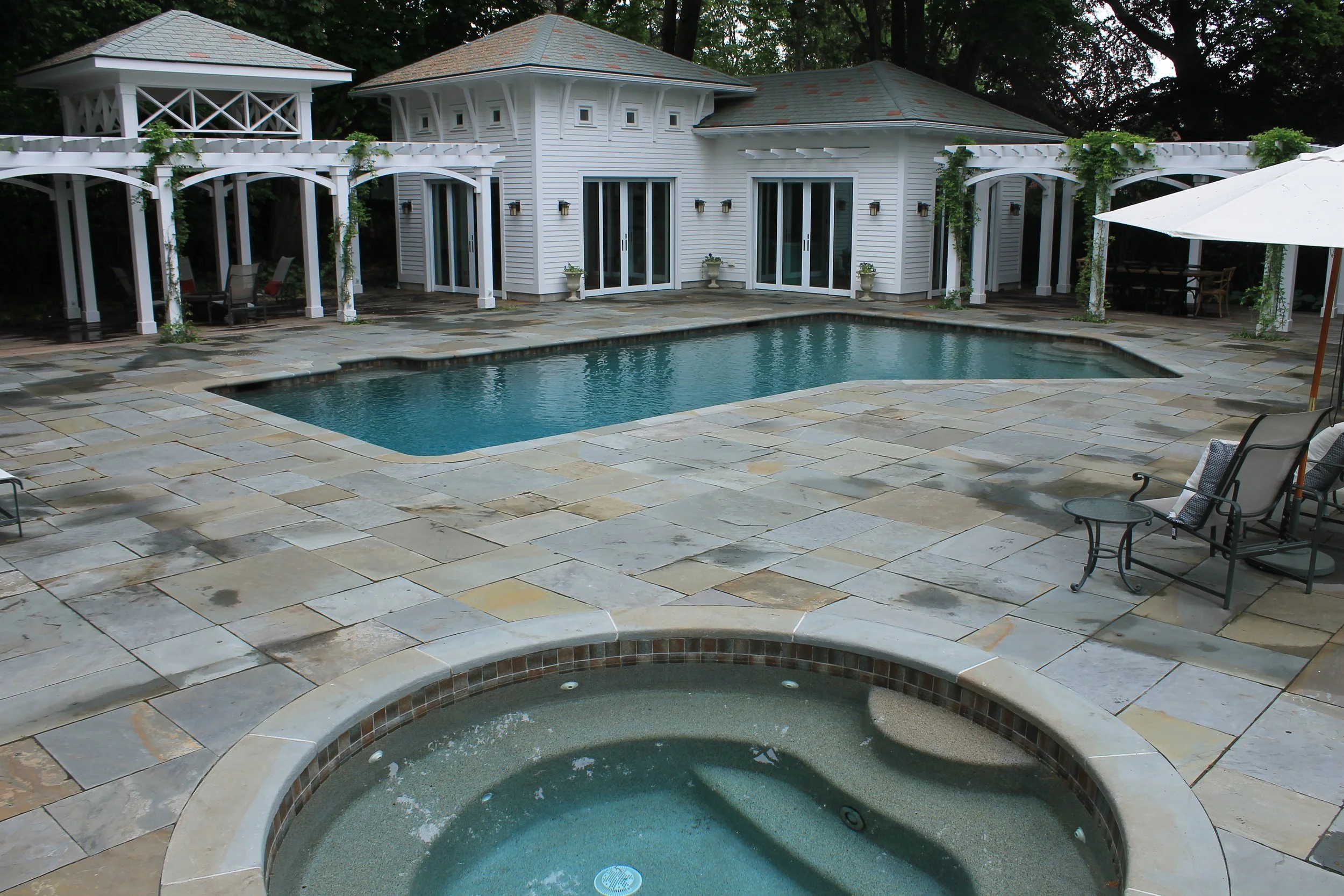 Your Weston, MA pool deck transforms with the right lighting and complementary features. Our team creates these magical outdoor spaces daily, combining quality materials with expert design. We understand how pool deck and outdoor lighting in Weston, MA work together to extend your enjoyment long after sunset. Ready to see your backyard in a whole new light? That's what we do best - turning ordinary pools into extraordinary outdoor living spaces that become the heart of your home.